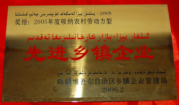 2012年6月13日,榮獲沙依巴克區(qū)政府授予的“突出貢獻(xiàn)企業(yè)獎(jiǎng)”榮譽(yù)稱號(hào)(瓷獎(jiǎng)杯、報(bào)紙)