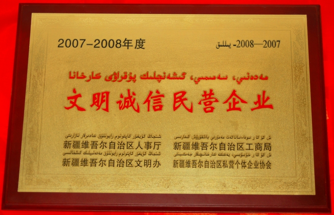 2010年6月,被新疆銀行業(yè)協(xié)會(huì)評(píng)為2008-2009年新疆銀行業(yè)“信貸誠(chéng)信企業(yè)客戶”榮譽(yù)稱號(hào)。(文件及證書)